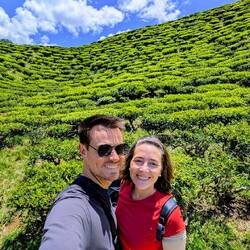 Nach gute 2️⃣,5️⃣ Stunden waren wir am Ziel. 🎯👀💪 Bei den Teeplantagen 🌿 des Cameron Valleys. Was ein Anblick 🤩. Was ein Ausblick 🤩. Wie in einer anderen Welt. So schön. 😍 Diese Hügel mit den unzähligen Teebäumchen. Wow! Unser Weg führte durch die Teeplantagen zu einem Aussichtspunkt 👀. Und auch hier wieder: Wow! So schön! Wir genossen die Ruhe und die Aussicht. Danach ging es für uns in ein Café. Dort stärkten wir uns mit einem Erdbeer-Tee 🫖 und Scones 🧁 mit Clotted Cream und Erdbeerkonfitüre (britische Tradition aus früheren Zeiten). Das hat gut getan.