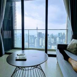 Jetzt sind wir seit einigen Stunden hier und können unser Glück 🍀 kaum fassen. 🫣 Unsere Airbnb Wohnung ist ein Traum. 😍 Sie ist modern, geräumig und liegt im 43A ten Stock, über dem 43ten und unter dem 45ten (den Stock 44 gibt es hier nicht, da die Zahl „4“ im chinesischen klingt wie das chinesischen Wort „Tod“). Mit direktem Blick auf den 🌟 Merdeka 118 (eines der bedeutendsten architektonischen Wahrzeichen der Welt, mit einer Gesamthöhe von 678,9 Metern ist er das zweithöchste Gebäude der Welt, übertroffen nur vom Burj Khalifa in Dubai), den 🌟 KL Tower und und die berühmten 🌟 Petronas Towers. Hinzu kommt ein direkter Zugang zu einer Mall mit Food Court.