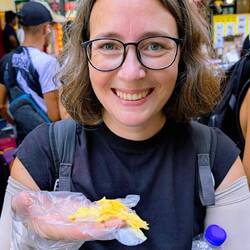 Als nächstes haben wir uns, vorbei am 📍Guan Yu Tempel, auf den Weg nach 📍Chinatown gemacht. Dort hatten wir die Möglichkeit die hier so beliebte Durian Frucht (riecht und schmeckt scheußlich 🤮) und die Mangostane Frucht (schmeckt sehr gut 🤤) zu probieren.