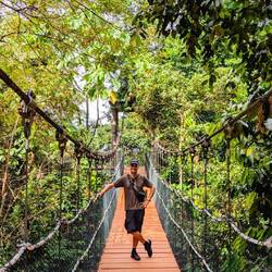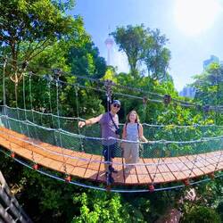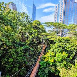 Begonnen hat unsere Runde auf dem Baumwipfelpfad. Über mehrere Brücken 🌉 auf verschiedenen Höhen ging es durch den noch sehr ursprünglich wirkenden Wald 🌳 in Mitten von Kuala Lumpur. Immer wieder hatte man Blick 👀 auf den KL Tower (Fernsehturm), den Merdeka 118 und die drumherum liegende Skyline. Was ein Erlebnis. 🤗 Weiter ging es dann auf verschiedenen Wegen durch den (Regen-) Wald. Vorbei an Affen 🐒 und einem Bambuswald 🎋. Es gibt dort sogar einem kleinen Campingplatz ⛺️.