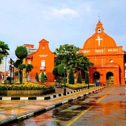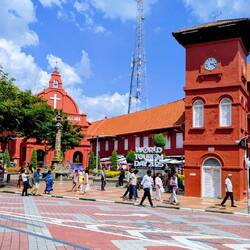 Vorbei an der 📍Church of St. Francis Xavier Melaka und schon waren wir im historischen Zentrum mit den roten Häusern aus der holländischen 🇳🇱 Besatzungszeit, dem Dutch Square (Red Square), mit der📍Christ Church Melaka, dem Tan Beng Swee Clock Tower und dem Stadthuys, der 📍Melaka Windmill und dem 📍Queen Victoria's Fountain. Da sind wir uns wie in „Kleinholland“ vorgekommen.😀