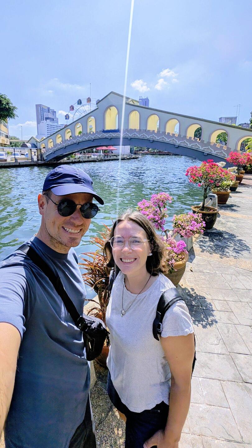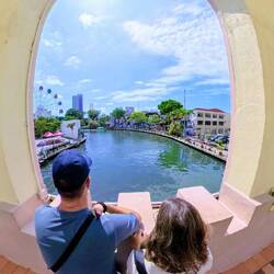 Für uns ging es heute am Melaka River (oder Malakka oder Malacca) entlang. Er fließt vom Landesinneren hier in Malakka vorbei, bevor er in die „Straße von Malakka“ mündet. Einst war er eine bedeutende Handelsroute 🚢, ist heute eine Haupttouristenattraktion mit Bootsfahrten (River Cruise) 🛥️ und bekannt für seine malerischen Uferwege, Cafés ☕️ und Wandgemälde 🖼️. Zuerst ging es für uns ein Stück flussaufwärts. Einmal über die 📍Old Bus Station Bridge, vorbei am kleinen Freizeitpark 📍Melaka River Park und dann den 📍„Melaka River Walk“ entlang in Richtung Zentrum. Wir sind an vielen tollen bunten Häusern 🏠 und kleinen Parkanlagen 🌳 vorbei gekommen. Wirklich sehr malerisch. An manchen Ecken hat es sich wie in einem Freizeitpark angefühlt. So liebevoll gestaltet. 🥰