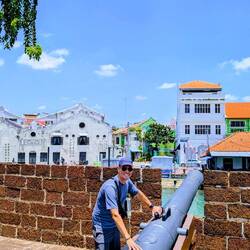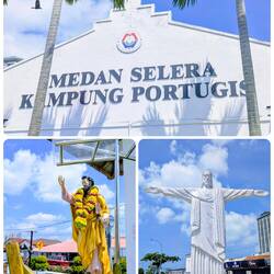 Um zu unserer nächsten Station, dem Portugiesischen Viertel 🇵🇹, zu kommen haben wir ein Taxi genommen. Es war einfach zu warm. 🥵 Nur 10 Min. später (statt 45 Min. zu Fuß) waren wir im 📍Portuguese Settlement.🇲🇾🔜🇵🇹 Der Ort, an dem damals die Portugiesen anlegten. Hier waren die Häuser flacher. Über den Haustüren hingen Kreuze ✝️. Eine Christus Statue (Christ the Redeemer Statue) gab es natürlich auch. Wow. 🤩 Was ein Kulturwandel.