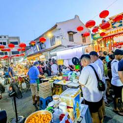 Abends ging es dann nochmal los auf die Jonker Street (dort war heute Abend Nachtmarkt 🌙🏷️ mit vielen Essensständen aber auch allgemeinen Verlaufsständen) und in einen kleinen Biergarten. Dort gab es für Felix das erste schon lang ersehnte echte Malaiische Bier 🍺 (eine kleine Malaiische Craftbier Marke, auch wenn im Ausland gebraut wird). Ein voller Erfolg. 👍