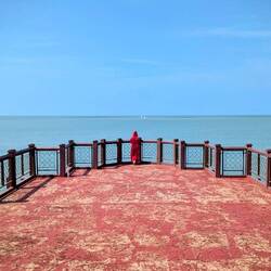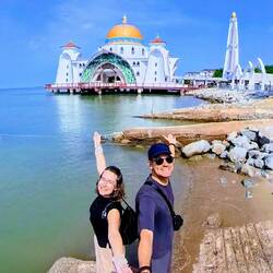 Von dort ging es dann zu Fuß 👣 in Richtung Harbour City (Hafenstadt). 🇮🇳🔜🇲🇾 Ein ehemals pompös geplantes Viertel, mit einem großen Kreuzfahrtschiff Terminal 🚢, einem Freizeitpark 🎡 und Luxus-Hotels 🏨, das leider nie fertig gestellt wurde. 😏 Entlang der verlassenen Straßen ging es für uns zur 📍Melaka Straits Mosque. Die Moschee liegt direkt am Meer 🌊, an der „Straße von Malakka“ und ist auf Stelzen erbaut. Sehr imposant. 🤩 War auf jeden Fall ein Marsch in der Hitze wert.