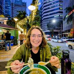 Nach einer Rast im klimatisierten Zimmer (war absolut nötig 🥵) ging es für uns nochmal ins Zentrum um etwas zu Abend zu essen. Auf dem Weg dorthin haben wir die nette Dame gesehen. 😚 Zum Abendessen gab es Nudeln mit Pesto 🍝 in einem Hawker Center. Eine Markthalle mit Streetfood Ständen. Lecker war’s.Read more