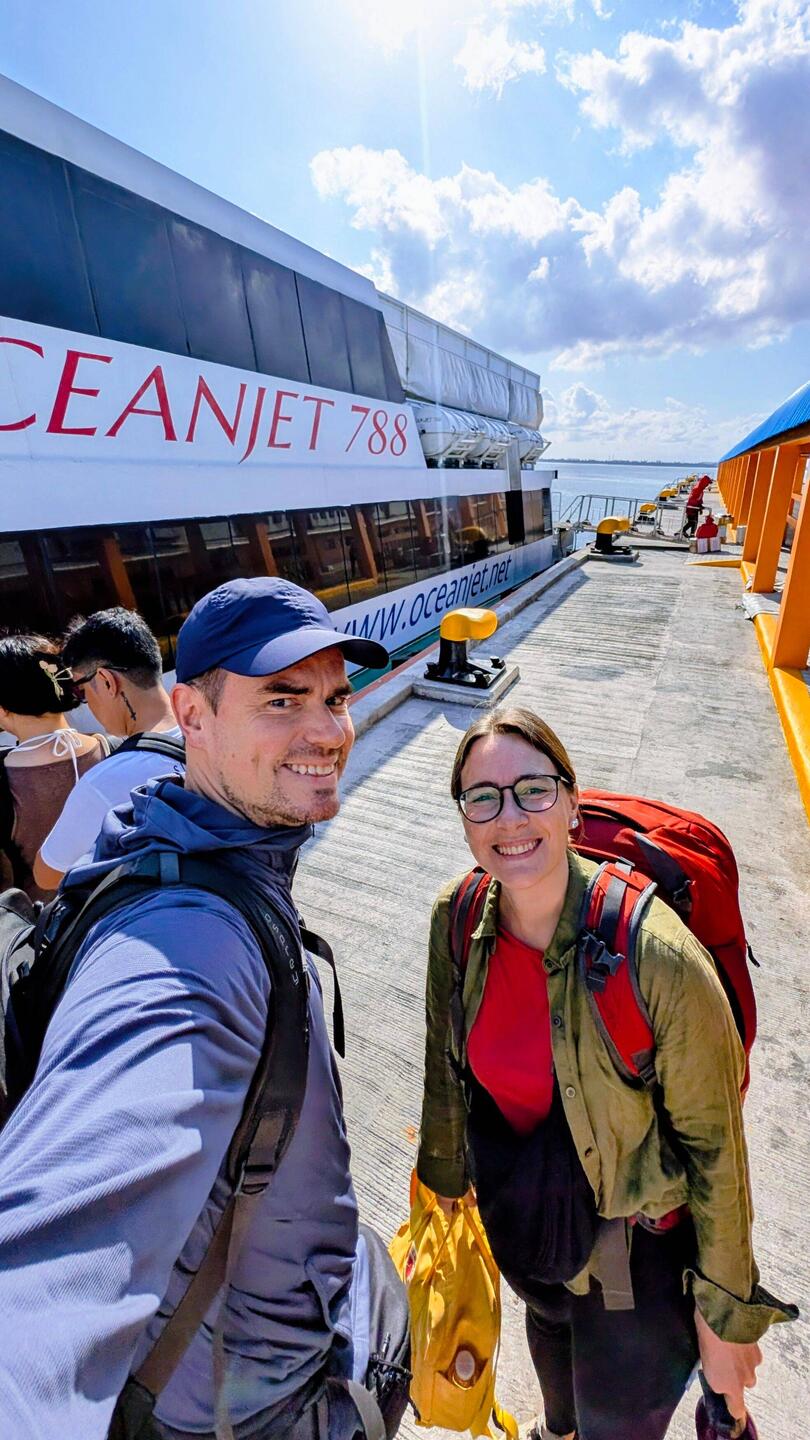 Die Tickets 🎟️ hatten wir bereits gestern online gekauft. Wir hatten bis zuletzt auf eine preiswertere Busverbindung mit kurzer Fährfahrt gehofft. Leider vergebens. 🚐❌😏 Nun ist es das „Schnellboot“ mit einem Zwischenstopp in Tagbilaran (dort geht es für uns nach Dumaguete hin) geworden. 👍