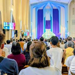 Nach einiger Zeit in der Unterkunft zur Abkühlung 🥵 und für weitere Recherchen 💻 ging es abends nochmal zur Our Mother of Perpetual Help Redemptorist Church. Dort hat um 18 Uhr nämlich ein Oster-Gottesdienst 🐣🙏 stattgefunden, den wir besuchen wollten.