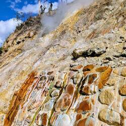 Unser erster Stop war der 📍Sulphuric Mountain mit seinen Sulphuric Vents, den Schwefelquellen 🌫️. Was ein Anblick, wenn der Schwefeldampf einfach aus den Felsen raus kommt. 😮 An den Geruch muss man sich erst gewöhnen. 🥴