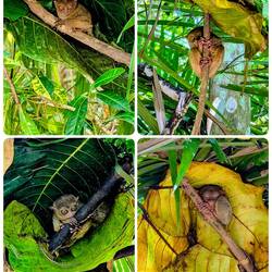 Die sehr schüchternen nachtaktiven Tarsiers gehören zu den weltweit kleinsten Primaten. Sie sind ungefähr so groß wie Felix Hand und besonders imposant auf Grund ihrer großen Augen (größer als ihr Gehirn). Zwischen Blättern und Ästen geschützt hatten wir das Glück einige zu sehen.