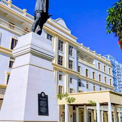 Danach ging es dann zum 📍Ninoy Aquino Freedom Park und dem anbei liegenden Capitol. Weiter durch die Stadt mit vielen verschiedenen Eindrücken.🤔 Wenn man diese Gegebenheiten mit denen in anderen bereits bereisten Ländern vergleichen sollte, fühlt man sich am ehesten wie in Thailand 🇹🇭. Besonders die „charakteristischen“ offenliegenden Stromkabel sind so typisch Thailand 😆. Auf dem Rückweg sind wir noch am Meer 🌊 und der 📍Silliman University (mit der Kirche) vorbei gekommen.