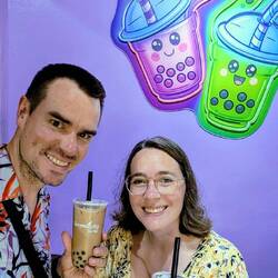 Nach dem Park ging es noch ein gutes Stück durch städtisches Gebiet. U.a. vorbei an der Formel 1 Strecke 🏎️ (Start und Ziel 🏁) des Singapur Night Race. Zur Stärkung haben wir uns in einem Einkaufszentrum ein Baguette 🥖 und einen Bubble Tea 🧋 geholt.