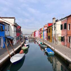Burano, 40 mins water bus ride from Santa Lucia Railway station. It’s a place full of colourful houses and is famous for laces.