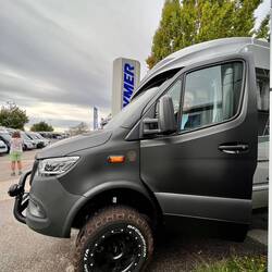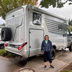 Wetterumschwung. Wolken und etwas Regen waren wetterbestimmend. Heute konnten wir die vor Ort befindlichen Fahrzeuge ausgiebig anschauen und die Vor- und Nachteile herausfinden. Der neue Hymer 580 4x4Læs mere