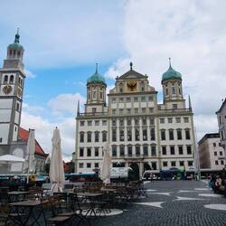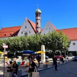 Nach 36 Kilometern Fahrtstrecke parkten wir um 10:00 Uhr auf dem Stellplatz in Augsburg ein. Der Platz liegt einerseits an der Wertach und andererseits nur durch Büsche getrennt an einer befahrenenLæs mere