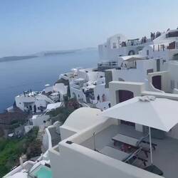 Santorini is famed for its unique black sand beaches, a result of its volcanic history. While we didn't visit any of these beaches, we could see them from afar, a stark contrast to the brilliant white of the cliff-side buildings.