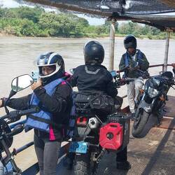 Nachdem wir aus der Pseudo Wüste heraus gefahren sind haben wir mit einer Motorradfähre übergesetzt. Die Fähre fuhr bis in die Mitte des Flusses, wo eine Insel war. Dort wurden wir abgesetztLeggi altro