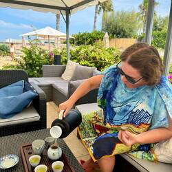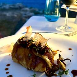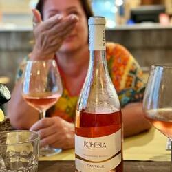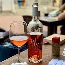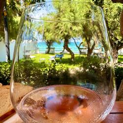 Dnes klasicky veget az do piatej (super ranajky s vyhladom na more, santenie vo vlnach, opalovanie, podcasty, caj, obed od Melanie s dalsim miestnym vinom z Puglie - tentokrat ruzove Calafuria sLes mer
