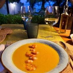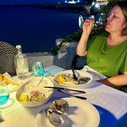 Dnes opat veget v areali, kedze nas caka spominana spolocna vecera. Program teda identicky ako vcera, uplna almazia :-) Dnes navyse vlnky v mori, takze sme aj zasantili. No a Mirka nam pripomenula, zeLes mer