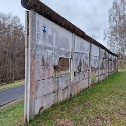 Hier bei Görsdorf befindet sich noch ein denkmalgeschütztes Stück der ehemaligen, innerdeutschen Grenzmauer. Geschichte zum Anfassen sozusagen.