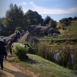 Wir gehen über die Bücke, an der Mühle vorbei zum kleinen Pub "The Green Dragon". Dieser liegt auf der anderen Seite des Sees in Hobbiton. Hier gab es für uns sogar einen kostenlosen Drink. DaRead more