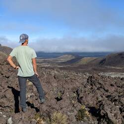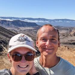 Morgens um 6Uhr stehen wir also auf, es ist noch stockdunkel, neblig und es sind nur 5°C. Wir sehen wie die Sonne aufgeht und hoffen, dass wir sie nicht zum letzten Mal sehen. Auf dem Weg zum Shuttle haben wir uns erstmal verfahren. Ganz abgehetzt sind wir aber noch rechtzeitig angekommen. Mit dem Shuttle ging es dann zum Ausgangspunkt unserer Wanderung. In einem Pulk von Menschen gingen wir durch eine Landschaft, die uns sehr an Tasmanien erinnerte. Die Wolken hängen noch tief zwischen den Bergen. Dann geben sie langsam den Blick auf einen Vulkan frei. Jetzt sieht man auch richtig die Lavasteine auf dem Feld vor uns. Wir müssen jetzt die "Devils Staircase" hinauf aber zum Glück wird das Wetter immer besser. Oben angekommen stehen wir direkt vor dem Schicksalsberg aus "Der Herr der Ringe". Hinter uns am Horizont sieht man einen weiteren Berg über den Wolken. Es ist der Lonley Mountain aus dem Film der Hobbit. Leider ist es viel zu weit weg um ihn mit dem Handy aufnehmen zu können aber es sieht aus wie im Film. 🤩