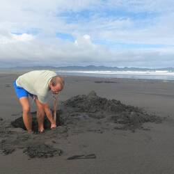 Von so einem Strand haben wir weiter nördlich in Neuseeland gehört aber dieser hier ist ein echter Geheimtipp. Wir hatten nur schlechtes Timing.Leia mais