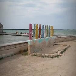 Wir machen Frühstück und schauen uns noch einmal um. Hier gab es mal ein Restaurant, die Badestelle zwischen Mangroven und einer Mauer wird noch gut genutzt. Recht viele Mexikaner kommen hier her und Baden mit ihren Kindern. Dann fällt uns noch ein Krokodil auf, nicht weit von der Familie mit Kindern entfernt. Komplett verrückt hier baden zu gehen.