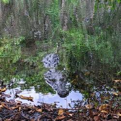 Dann wollen wir doch nochmal sehen ob sich die anderen beiden schon bewegt haben. Tatsächlich schwimmt eines durchs Wasser und lässt uns ein paar schöne Aufnahmen machen. Wir haben riesen Respekt und trauen uns kaum auch nur auf dem Steg an dem Krokodil vorbei zu gehen.