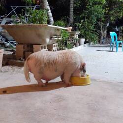 Hier laufen neben allerhand Hunden und Katzen auch zwei Schweine umher. Wir haben immer nur eines gesehen. Dieses wurde von Peter auf den Namen Pocahontas getauft. Pocahontas wird auch gerne mal gestreichelt und fordert dies auch ein.