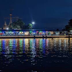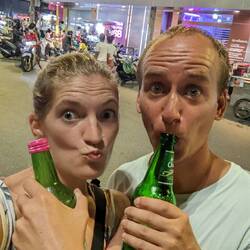 In der Dämmerung ging es über die Walking Street bis an den Hafen. Hier mussten wir erstmal eine Straße überqueren, bevor wir die tolle Skyline fotografieren konnten. Die Roller halten hier nicht bei rot, gut das wir schon Übung haben in diesem Verkehr. Nämlich schon ca. 100 Tage. Darauf stoßen wir mit einem Tiger an, passenderweise hatte der Tisch Währungen von verschiedenen Ländern drauf. Einige davon haben wir auch schon gesammelt. 😁Read more