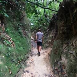 In George Town sollte es wieder Koloniale Gebäude und Streetart zu besichtigen geben. Die haben wir uns aber nur von weitem angesehen. Dafür haben wir endlich mal wieder eine richtige Wanderung gemacht. Erst einmal quer durch George Town und dann ab in den Wald. Gleich am Anfang trafen wir auf ein paar Affen Gruppen.