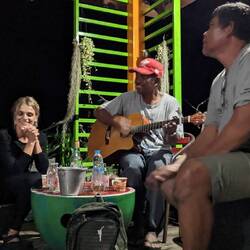 Nachmittags haben wir uns ein schattiges Plätzchen am Strand gesucht. Als echte Low Budget Reisende haben wir keine teure Liege am Strand genommen, sondern uns ganz oben an die Hecke unter einen Baum gesetzt. Das war nicht nur günstig, wir hatten sogar Livemusik durch die Firmenfeier die hinter der Hecke gefeiert wurde. 😎👌