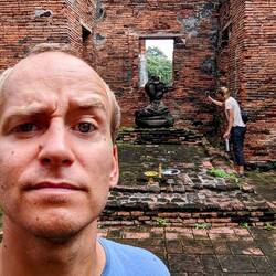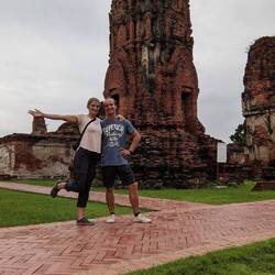 Bevor wir Thailand auch schon wieder verlassen müssen, wollten wir uns noch die alten Tempel von Ayutthaya ansehen. Wir hätten das auch von Bangkok aus machen können, aber dann hätten wir nicht um 5Uhr morgens aus dem Nachtzug von Chiang Mai steigen können. 🥱😴 und das nach einer der Schlafkostesten Nachtfahrten. Unser Bett war direkt über dem Dieselaggregat und dadurch lagen wir wie auf einer vibrierenden, ruckelnden Waschmaschine- da helfen auch keine Oropax mehr 🫣 Morgens um 5uhr gab es leider kein offenes Café und dank der vielen Wolken auch keinen Sonnenaufgang zu sehen. Aber wir konnten unsere Rucksäcke immerhin schon um halb sieben bei der Unterkunft lassen. So konnten wir schon den ersten Tag voll für Erkundungen nutzen.