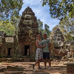 Das Angkor Wat gehört zur größten Tempelanlage der Welt und liegt mitten im Grün des Dschungels. Auf der Wiese standen wir noch zwischen "haufenweise" Menschen aber in der Anlage hat man kaum welche gesehen. Wir haben schon gelesen wie wenig derzeit los sein soll. Vor Corona waren hier täglich 7000-8000 Menschen, jetzt sind es gerade einmal 700. Klingt immer noch viel aber aufgrund der größe der Anlage hat es sich so gut verlaufen das wir kaum Bilder mit anderen Menschen drauf haben. Wir haben alles erkundet als wären wir die ersten Entdecker dieser Anlage. Wir haben einfach wahnsinniges Glück, jetzt Reisen zu dürfen und zu können.
