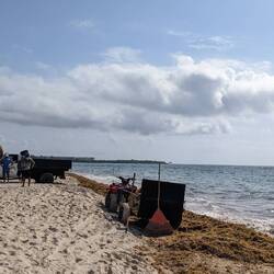 Der Campingplatz war direkt am Strand und auch wenn das alles sehr idyllisch und toll klingt, gab es da ein paar Haken: Die Toiletten und Duschen waren voller Mücken und stanken furchtbar und die Seegrasplage war trotz morgendlichen Aufräumarbeiten doch sehr präsent. 🙊 Nachts war es sehr heiß und die Mücken waren generell auch tagesüber eine echte Plage! ABER Dirk und ein freilaufendes, riesiges, süßes Schwein, das Peter 'Pocahontas' taufte, versüßte uns den Aufenthalt und so blieben wir am Ende dann doch insgesamt 3 Nächte... 😄Read more