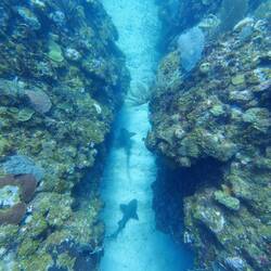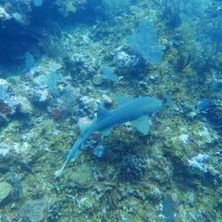 Später erzählte mir Peter, dass der Hai direkt hinter mir in den Tunnel geschwommen war. Problem war nur, dass dieser sich dann plötzlich in der Mitte des Tunnel auf den Boden legte. (Das machen Haie wenn sie schlafen wollen.) Weil die Höhle aber so niedrig war, kam Peter nicht an dem Hai vorbei, also hatte er hinter dem Hai etwas Sand aufgewirbelt, damit dieser nicht einschlief! Der Hai war darauf hin dann doch weiter mit uns durch den Tunnel geschwommen... Schon verrückt!! 😄Read more