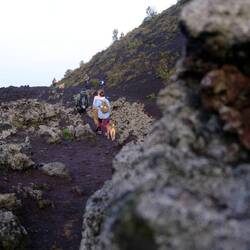 Um 4 Uhr stand Uber mit Rucksack aber tatsächlich vor uns und zusammen liefen wir den Pacaya hinauf zu einem Lavafeld. Ein paar Straßenhunde folgten uns während der gesamten Wanderung.