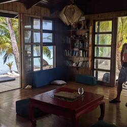 Und Wooooooow, es war wirklich eine Insel, wie aus einem Hollywood Film!! Die ganze Zeit über spielte ein DJ, wir badeten, schnorchelten und erzählten viel. Am Abend spielten wir lustige Spiele und Nachts pennte jeder einfach da wo er etwas zum Schlafen fand. Es gab neben ein paar Betten eine Menge Matten und als wir am nächsten Tag aufwachten langen überall im Haus und auf der Terrasse draußen Menschen auf Matten verteilt. Was für ein lustiger Ausflug!! Wir wären gerne noch länger auf dieser kleinen Trauminsel geblieben, aber um 11 Uhr wurden wir schon abgeholt. Die Wellen waren so hoch, dass der Kapitän nicht länger warten konnte. Bei der Fahrt wurden wir daher auch ordentlich durchgeschüttelt und vor allem wurden wir richtig nass!! 😄 Peter hat jetzt aber Medikamente gegen Seekrankheit und die scheinen ganz gut zu helfen. 😉