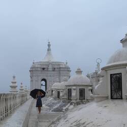 Am nächsten Tag regnete und donnerte es heftig! Nicaragua befindet sich gerade so richtig in der Regenzeit!! Trotzdem wollten wir uns die bekannte Kathedrale von Léon anschauen. Das besondere ist nämlich, dass man barfuß auf dem Dach der weißen Kathedrale herum spazieren darf. Hier hat man einen tollen Blick über die Stadt und ein bisschen "Santorini-Feeling".